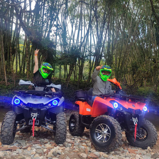 This tour is an ideal blend if you have limited time during your visit to Medellin but still wish to immerse yourself in stunning and unspoiled nature. We offer an exhilarating ATV adventure through lush trails and panoramic vistas. You'll feel the wind and adrenaline rushing through your veins as you connect with nature in the Antioquian mountains. Included is the opportunity for a leisurely hike to a fascinating waterfall, perfect for taking photos and refreshing yourself. We'll also pass through the town of Cocorná in Antioquia, where you can enjoy a delightful cup of locally sourced coffee at the main square.